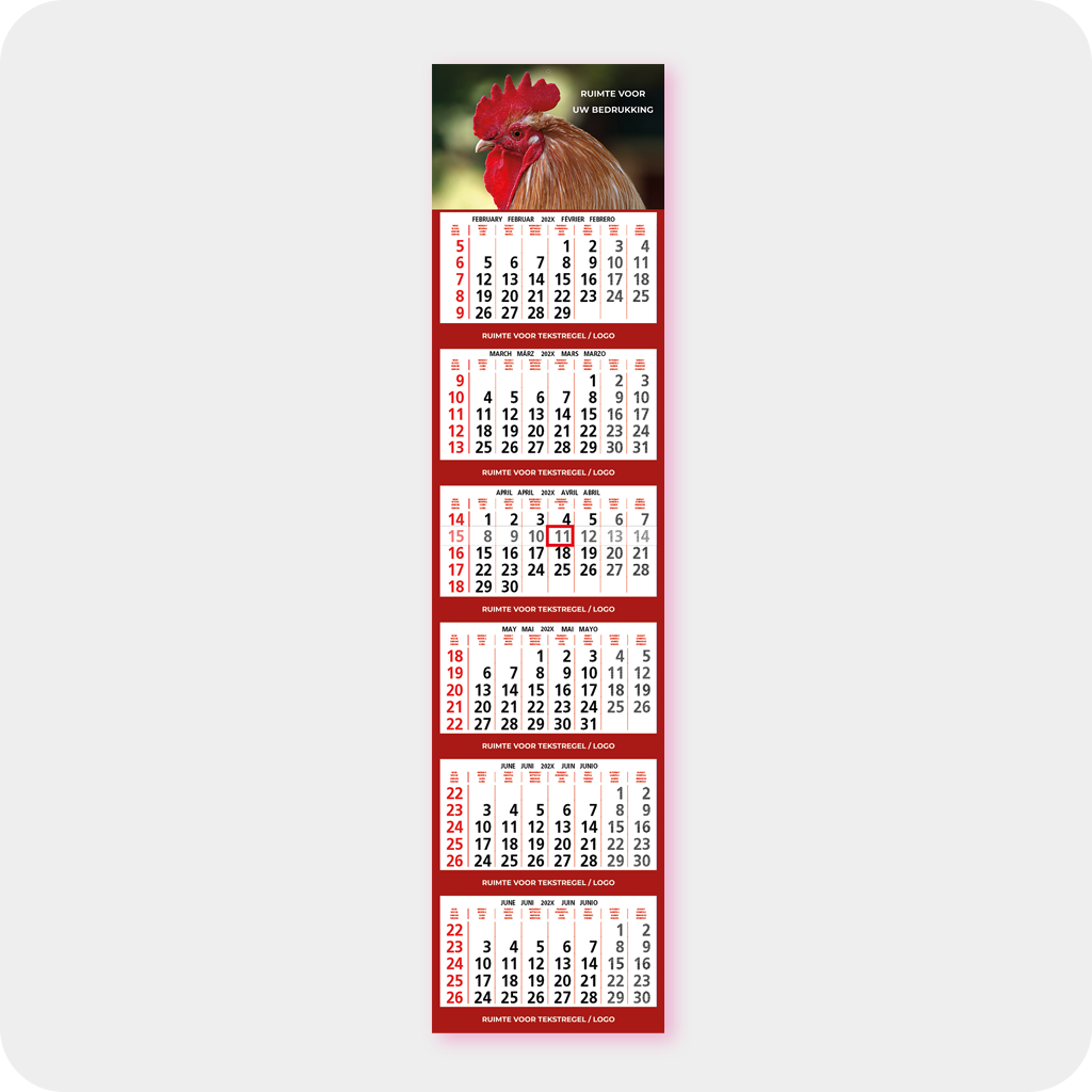 • kalenderschild voorzien van 6 vouwlijnen